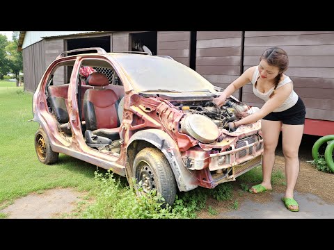 Cô gái mua xe hơi phế thải,sửa chửa rồi đem bán